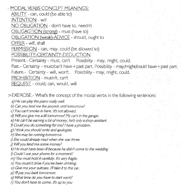 - +EXERCISES (Modals & their substitutes): Ego4U.