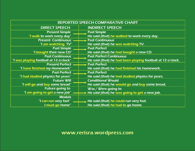 Today basic information on the Reported Speech by charts: